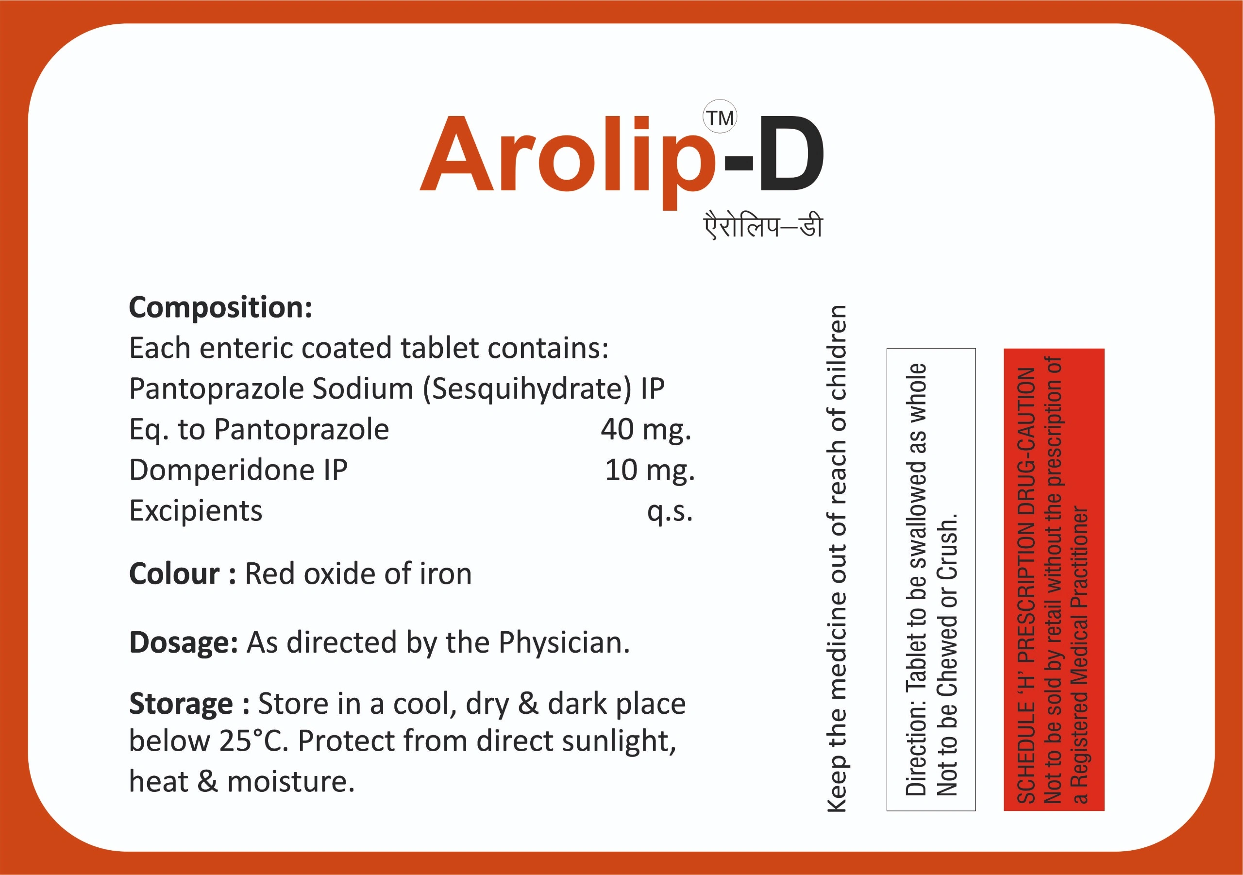 Drug-Food Interaction: St. John’s Wort, a herbal product sometimes used for mood-related conditions, may affect the effectiveness of Arolip-D Tablet (pantoprazole 40 mg + domperidone 10 mg).