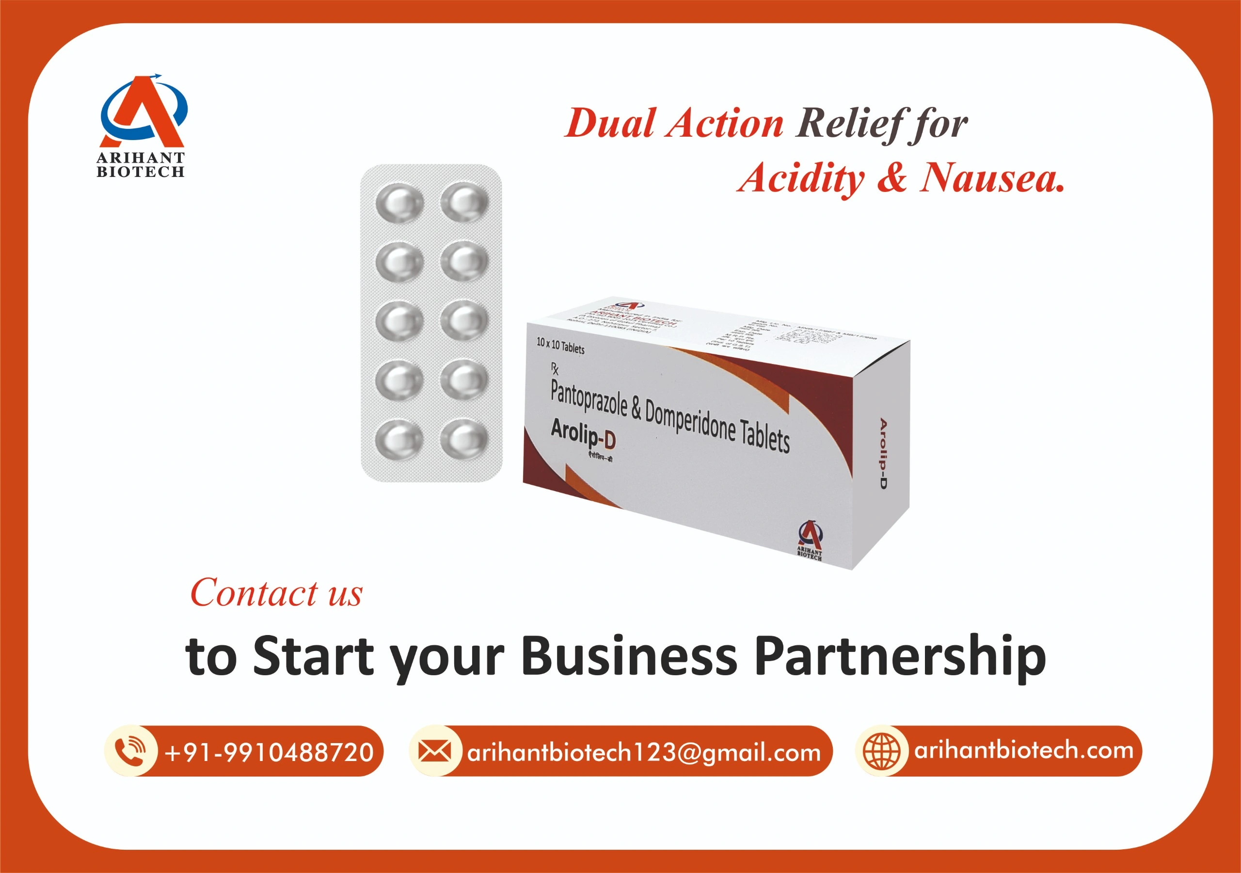 Pantoprazole: Pantoprazole belongs to a class of medicines called proton pump inhibitors. It works by blocking the proton pumps in the stomach lining that produce acid. By reducing acid production, Arolip-D Tablet (pantoprazole 40 mg + domperidone 10 mg) lowers the level of acid in the stomach.