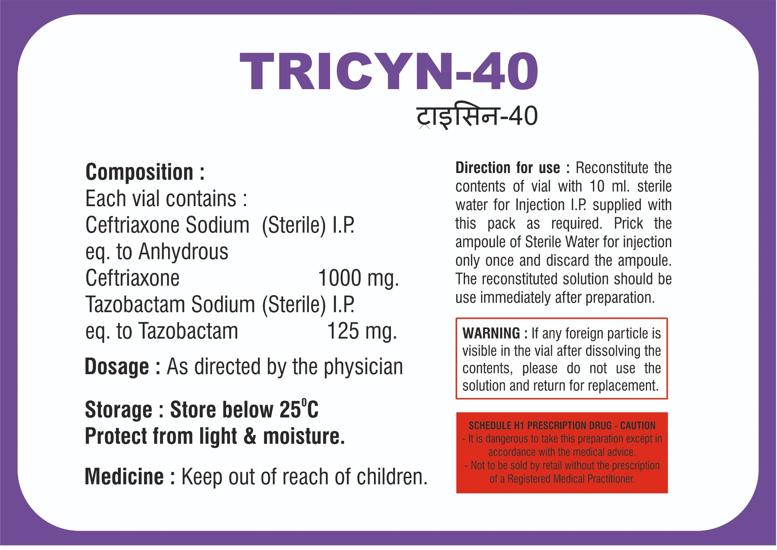 • Drug-Drug Interaction: Tricyn-40 Injection (Triamcinolone Acetonide 40 mg) may interact with antihypertensive medicines such as metoprolol, non-steroidal anti-inflammatory drugs such as ibuprofen and aspirin, and other corticosteroid medications.